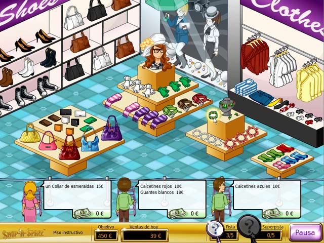 Shop-n-Spree es un fascinante juego que combina el juego de localizar objetos ocultos en la pantalla con el de atender negocios.